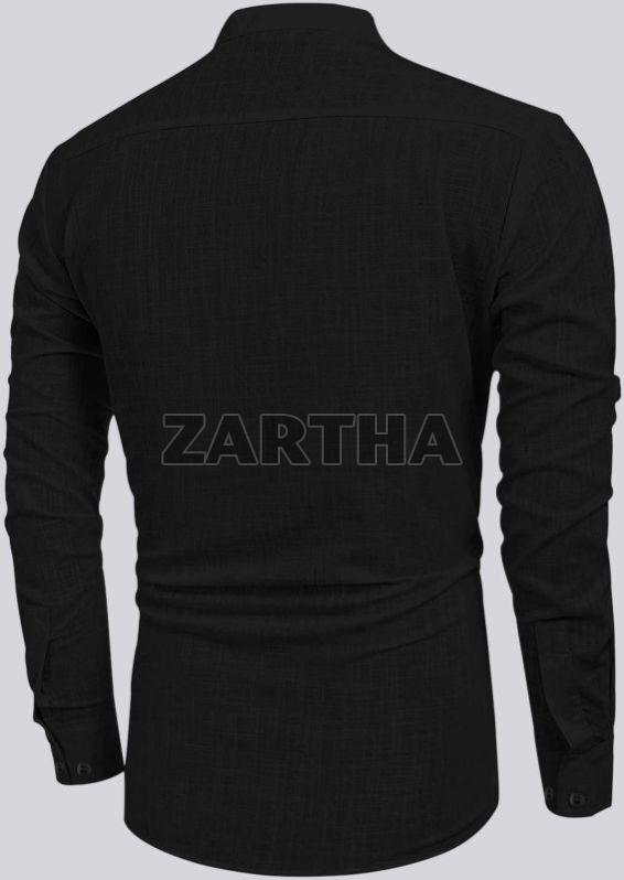 Home › Products › Mens Wear › Mens Short Kurta Shirt › Mens Black Cotton Linen Full Sleeves Regular Fit Short Kurta Shirt